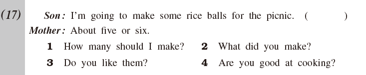 ここでは、Boy…恐らく息子でしょう。息子がお母さんに「Son: I’m going to make some rice balls for the picnic. (ピクニックのためにおにぎりを作るよ。)」と言っています。